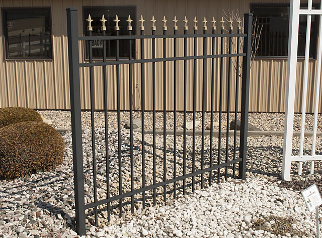 There are tons of styles to choose from when it comes to Ornamental fences. With varied heights, styles, colors, and finials you can create a unique look that will definitely make your property pop! Reach out to us to get a more narrow focus on what you are looking for. Below are the two examples that we have in our Outdoor Showroom.